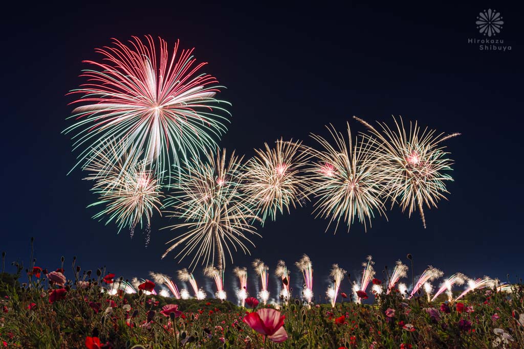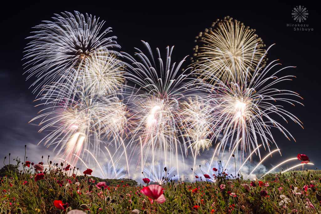 花火はこのポピー畑の至近で打ち上げられ、全国的にも珍しいポピーと花火のコラボレーションが堪能いただけます。